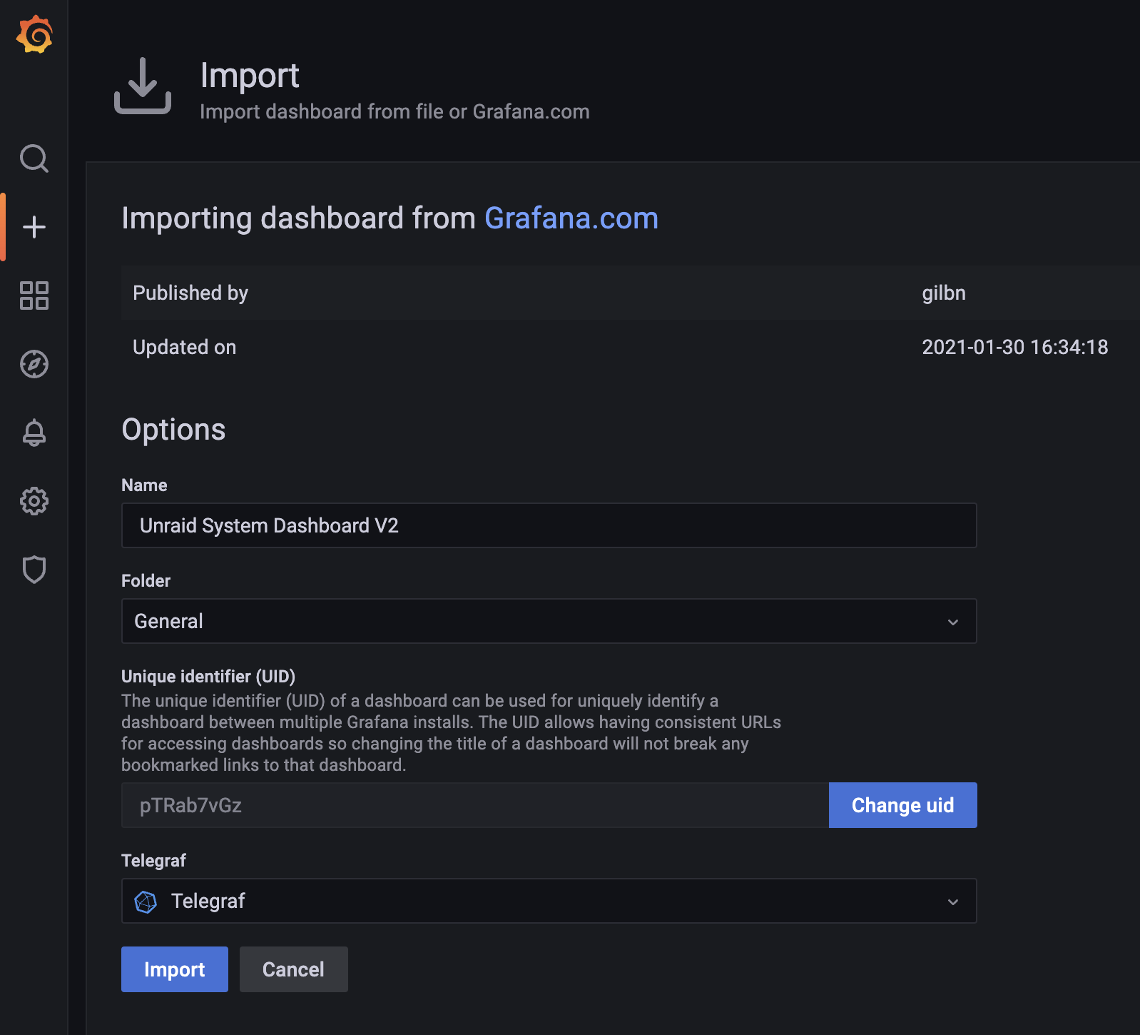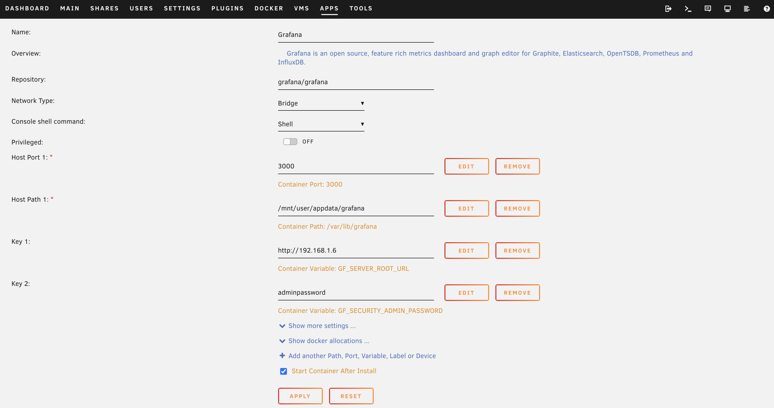 I then clicked Apply and went to my Unraid server’s IP and the port that I set (3000). I logged in with the admin as the username and the password that was set. I was now ready to add my first data source.