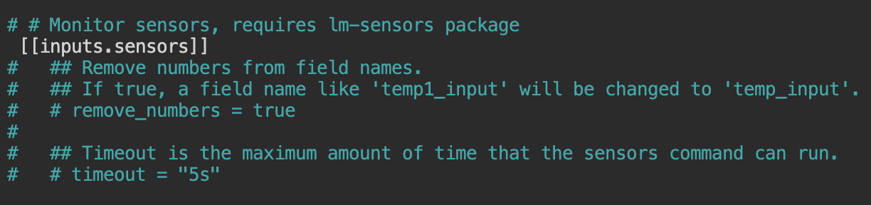 /bin/sh -c 'apt update && apt install -y smartmontools && apt install -y lm-sensors && telegraf' --user 0